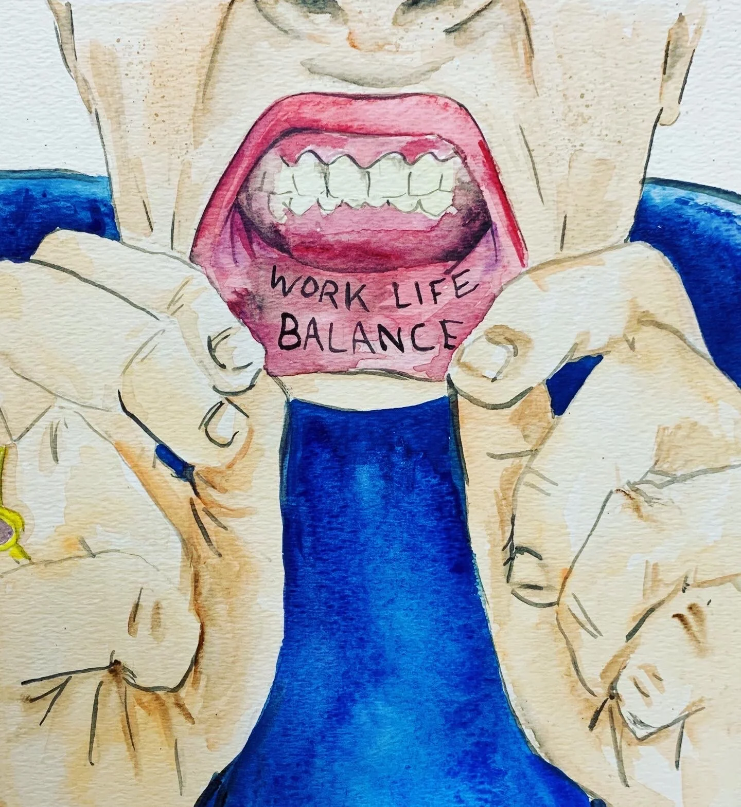 Featured: Work/Life Balance, watercolor, 8.5 x 11", 2020