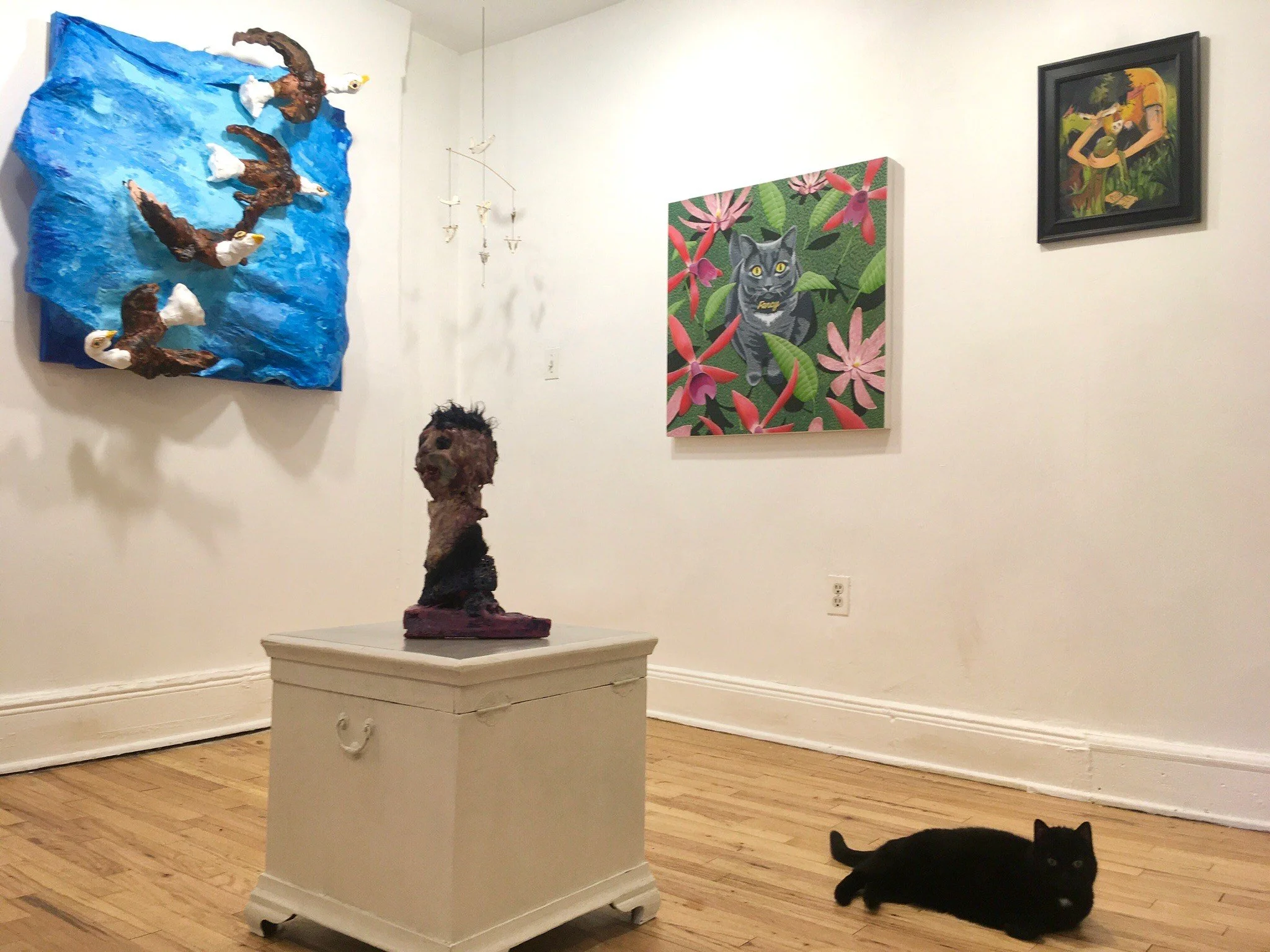 is an artist living and working in Brooklyn, NY. Her sculptures utilize materials associated with sexuality and kink, and depict how observations of fringe eroticism feel and look. Her works represent over-performative bodies, depicting a variety of elegant, glittering, dripping, and twisting sculptures and panels - characters in the midst of their sexual ‘acts,’ and a dependent on the architecture for their submissive support. In addition to curating exhibitions around the country, her work has been exhibited for nearly a decade throughout California, Washington, D.C., and New York, and she is currently a resident at Art Cake in Brooklyn.